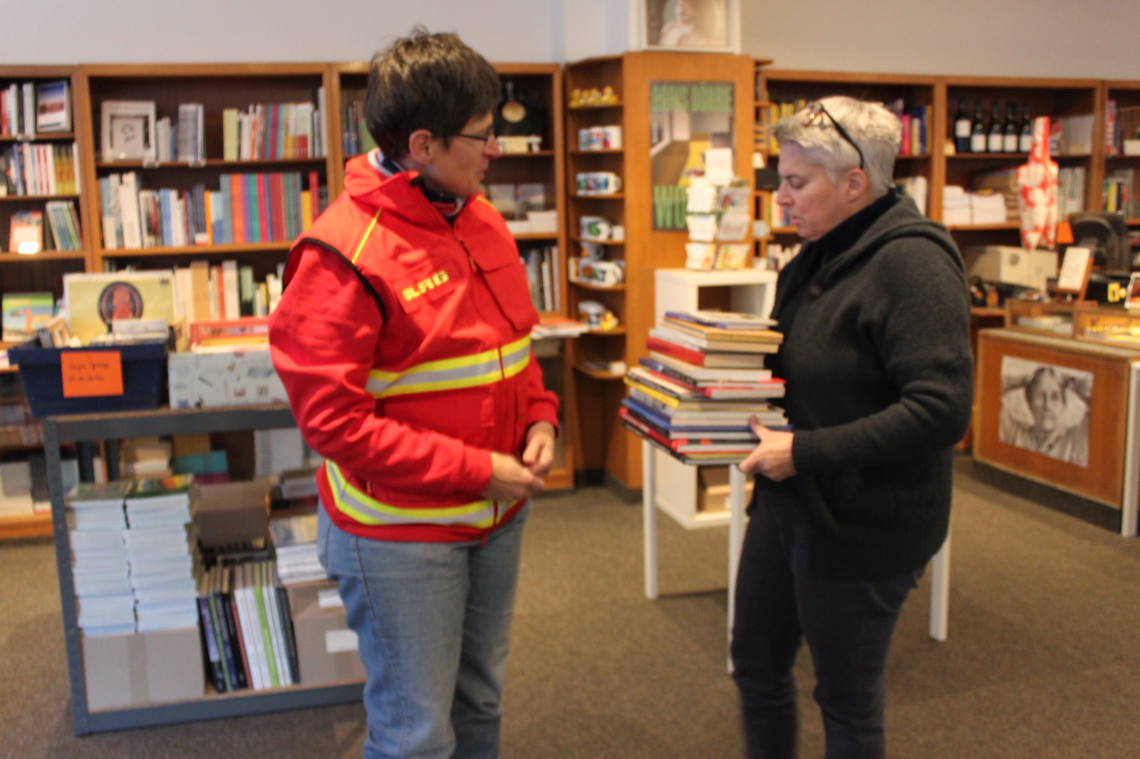 Die beiden Buchhändlerinnen nahmen nun die ersten Bücher entgegen und füllten die Kisten mit Ruhrgebiets-Literatur auf. „Zu Weihnachten werden immer viele Bücher verschenkt, da ist sicherlich das ein oder andere dabei, schauen sie gerne vorbei“.