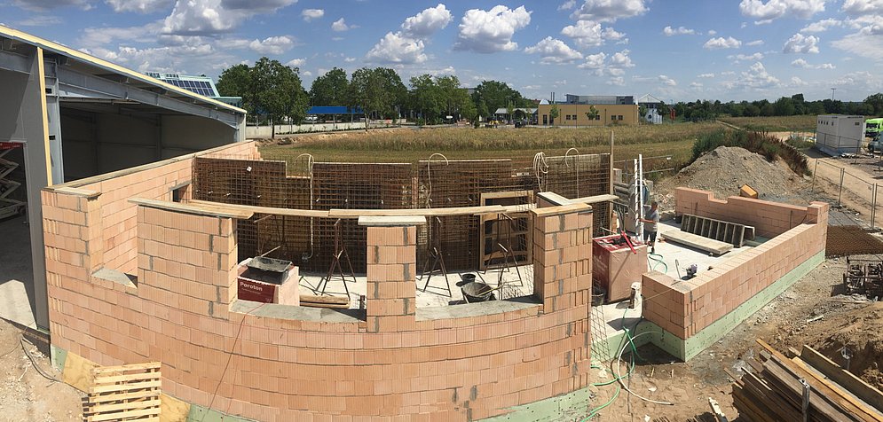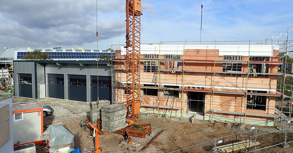 Mitte November waren zudem die Mauerwerksarbeiten am Gebäudeteil vollständig abgeschlossen, sodass der Bau deutlich an Gestalt gewann.