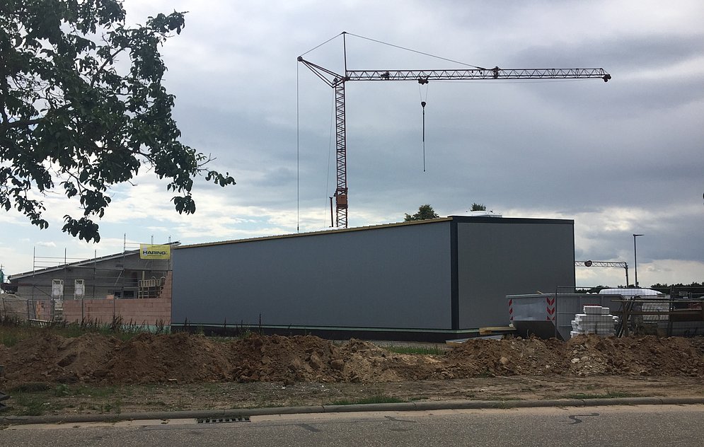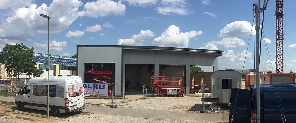Am 3. August 2019 war die Fahrzeughalle bereits komplett fertiggestellt. Sie verfügt über zwei Dachfenster sowie drei Tore, die einen funktionalen und flexiblen Zugang ermöglichen.