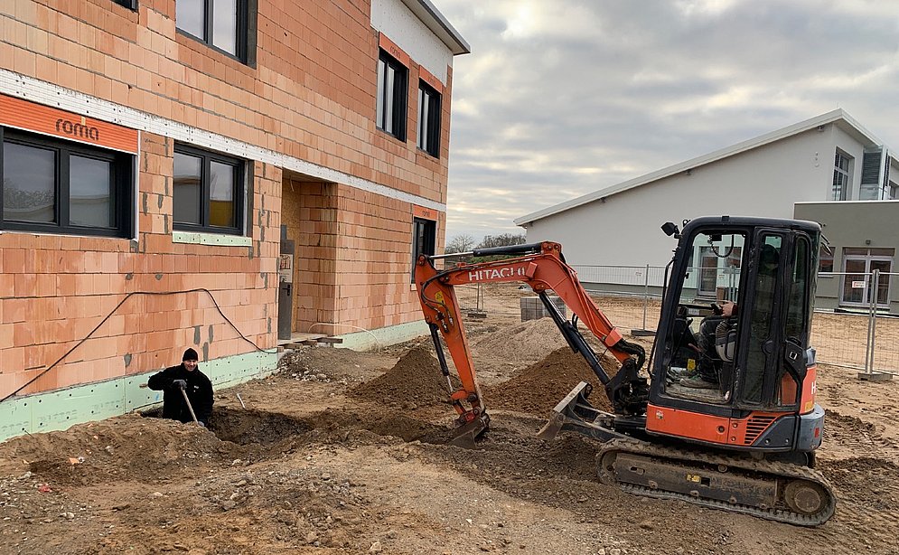 Der Bauzaun wurde gestellt, ein Schnurgerüst zur Vermessung des Gebäudes errichtet und die Fläche vorbereitet, damit die weiteren Bauabschnitte zügig folgen konnten.