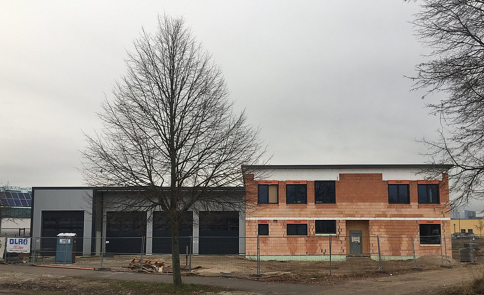 Vom den ersten Erdarbeiten im März 2019 bis zur offiziellen Fertigstellung sind in knapp 2,5 Jahren eine große Fahrzeughalle für drei Einsatzfahrzeuge und ein Boot entstanden. Im anschließenden Gebäude befinden sich Duschen und Umkleiden für die Einsatzkräfte, ein Desinfektionsraum, ein Büro und Schulungsräume, sowie ein Materiallager und ein Archiv.