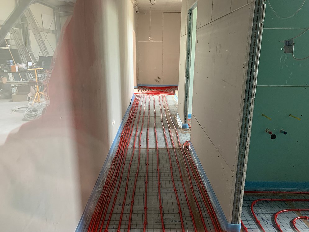 Anfang März 2020 erfolgte die Installation der Heizungsanlage im Gebäude. Damit wurde ein weiterer zentraler Baustein der technischen Gebäudeausrüstung umgesetzt.