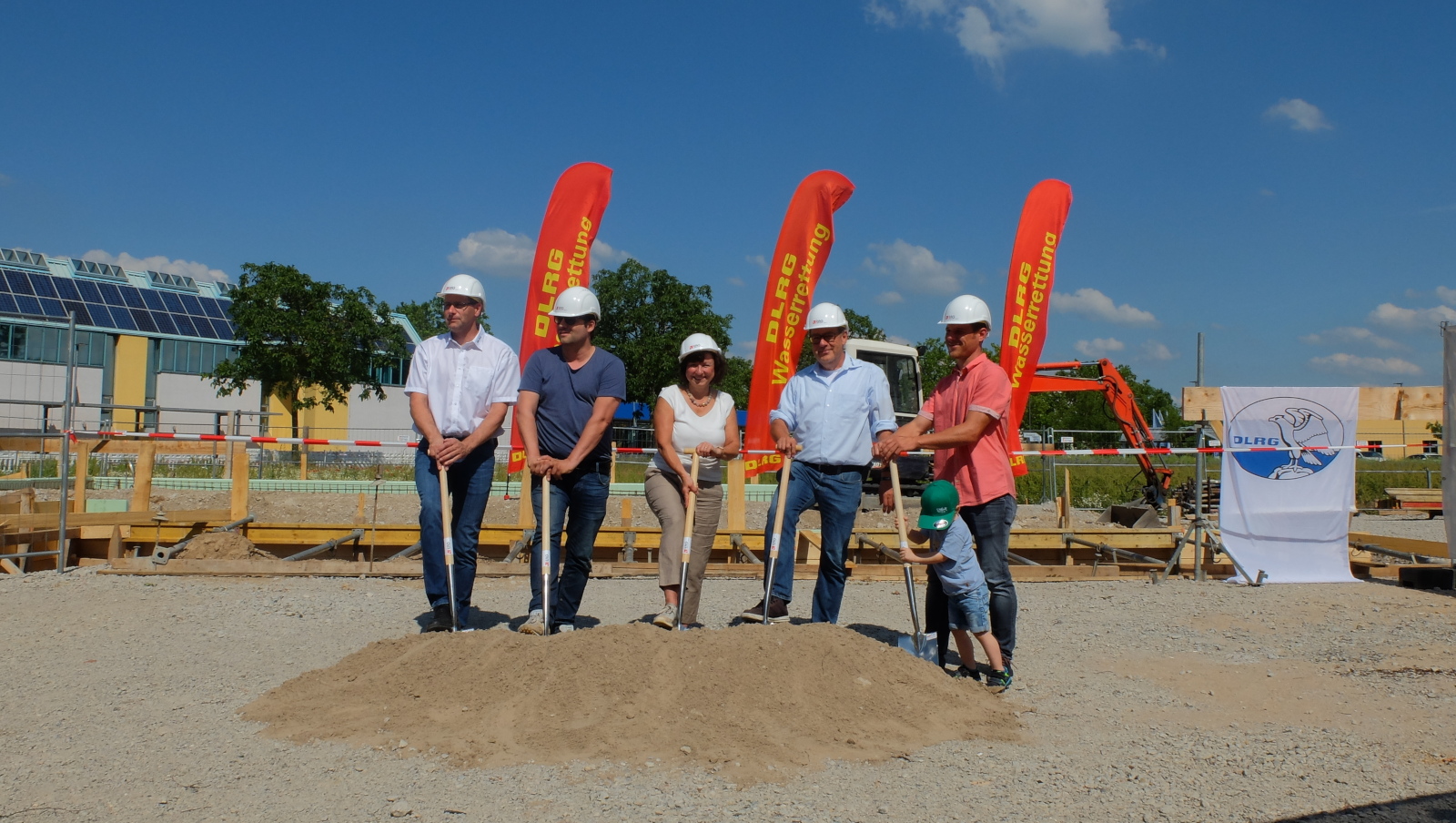 Gemeinsam mit Bürgermeister Dr. Eger wurde der Spaten in die Erde gesetzt. Rund 40 geladene Gäste nahmen an der Veranstaltung teil, darunter Vertreter der Gemeinde, der DLRG, der beteiligten Handwerksbetriebe sowie Mitglieder des Vereins.