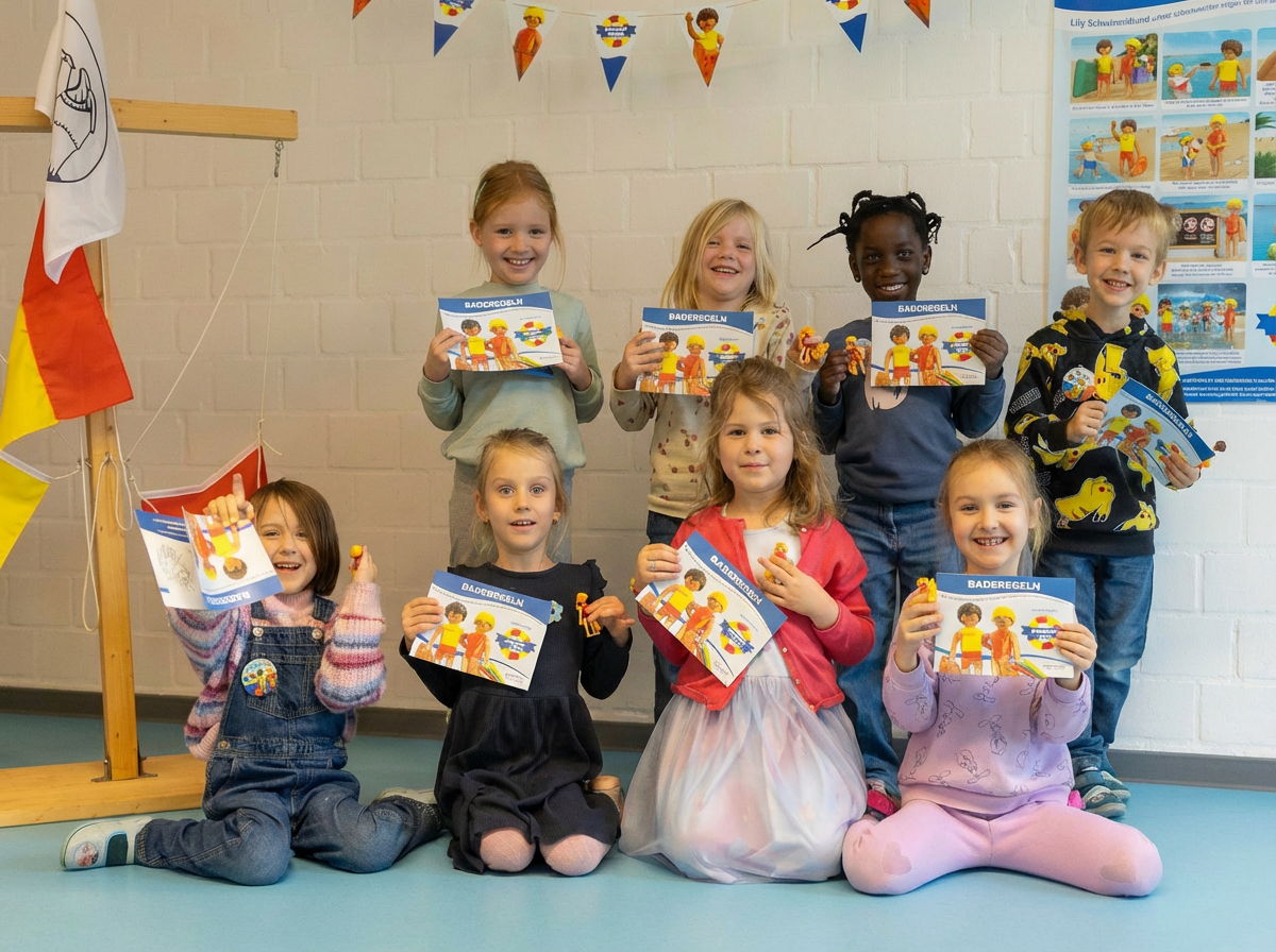 Wenn du dir für deine Vorschulgruppe oder deine Schulklasse auch einen Besuch der Rettungsschwimmer*innen zu den Baderegeln wünschst, frag einfach bei einer DLRG-Ortsgruppe in deiner Nähe nach.