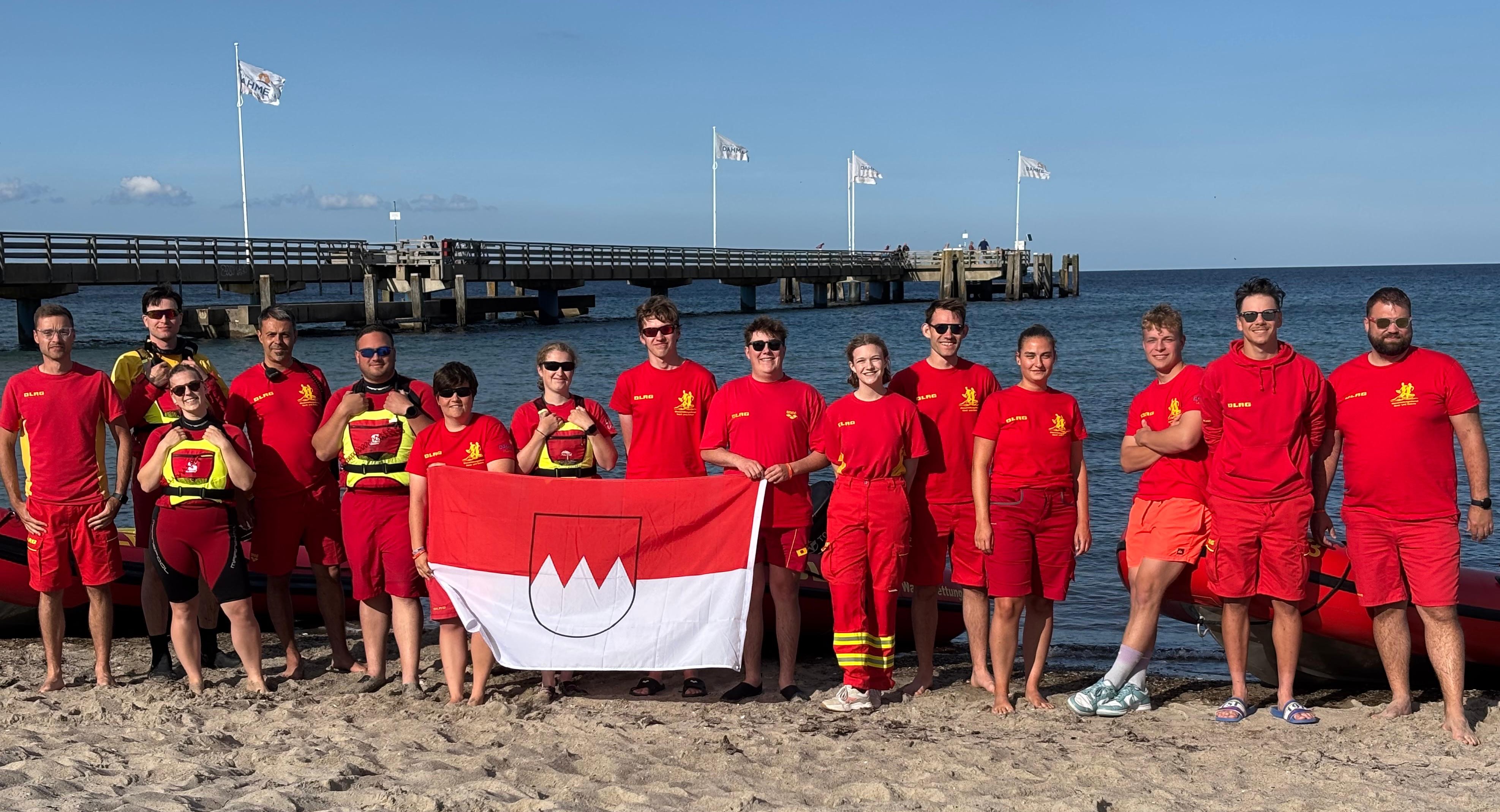 Dahme/Unterfranken – 15 ehrenamtliche Rettungsschwimmerinnen und Rettungsschwimmer der Deutschen Lebens-Rettungs-Gesellschaft (DLRG) aus den Ortsgruppen Schonungen, Werneck und Ebern haben Ende Juni eine Woche lang den Wachdienst an der Ostseeküste in Dahme (Schleswig-Holstein) übernommen. Nach rund acht Monaten intensiver Vorbereitung traten sie ihren Einsatz an der dortigen Wasserrettungsstation an.