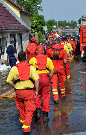 Wasserrettungszug Bremen und Hamburg bauen provisorischen Deich zum Schutz der Schönebecker Stadtteils Frohse. Am Sonntag, den 9.6.2013 wurde der Wasserrettungszug Bremen gegen 8.00 Uhr morgens im Bereitstellungsraum alarmiert. Grund war das stetig steigende Wasser im Schönebecker Stadtteil Frohse. Aufgrund eines durchweichten Deichs und der überlaufenden Kanalisation war bei Einsatzbeginn ein Wasserstand von ungefähr 50 cm auf einigen Straßen festzustellen. Die Einsatzleitung zog den Wasserrettungszug Bremen und Hamburg an der Einsatzstelle in Frohse zusammen. Plan war es einen provisorischen Wall zu erhöhen und durch Pumparbeiten den rückwärtigen Bereich zu sichern. Die Einsatzfahrzeuge wurden auf sicherem Terrain geparkt und die Kameraden m ... Mehr erfahren