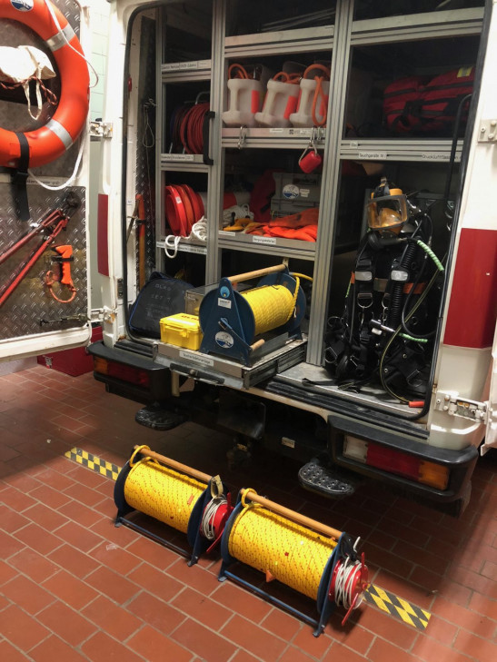 Unspektakulär wirken die gelben Seile auf den entsprechenden blauen Trommeln, doch für die Einsatztaucher in Bremen-Nord ergeben sich mit dieser Ausrüstung ganz wesentliche Vorteile im Einsatzfall - weiter noch: Sie sind ganz elementar für die Sicherheit der Taucher im trüben Nass verantwortlich. Die abgebildeten Seile beinhalten als Seele ein Kabel, welches den Leinenführer mit dem Einsatztaucher im Wasser verbindet. Die Kommunikation im trüben was fällt so erheblich leichter und bspw. eine Suche unter Wasser ist so wesentlich schneller realisierbar. Dank einer Förderung und einer Spende können jetzt zwei Einsatztaucher unter Wasser mit dem Leinenführer und untereinander mündlich kommunizieren. Das war so vorher ... Mehr erfahren