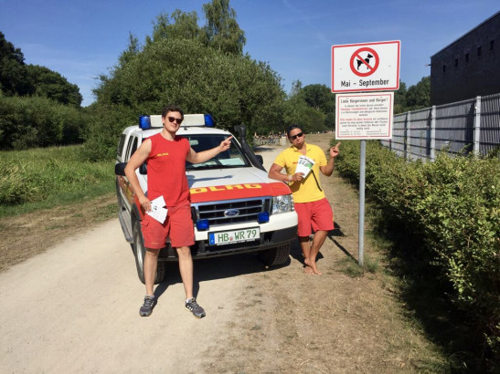 Wie in weiten Teilen Deutschlands begingen Himmelfahrt auch in Bremen diverse Menschen den Vatertag. Auch im Bereich Bremen-Nord pilgerten die gemischten Gruppen durch die Straßen und genossen das regenfreie und milde Wetter. Die DLRG Bremen-Nord besetzte daraufhin die Rettungswache am Sportparksee Grambke. Dadurch sollte sowohl auf Personen, welche sich in angetrunkenem Zustand zum Schwimmen in das Gewässer begeben, als auch auf mögliche sachbeschädigende Handlungen gegen die DLRG-Rettungswache selbst geachtet werden. Gegen 15.30 Uhr begann sich der Strand rund um den Grambker Sportparksee kontinuierlich zu füllen; wie erwartet sind auch einige hartgesottene „Vatertag’ler“ in den mit rund 16° C noch frischeren Sportparksee gespr ... Mehr erfahren