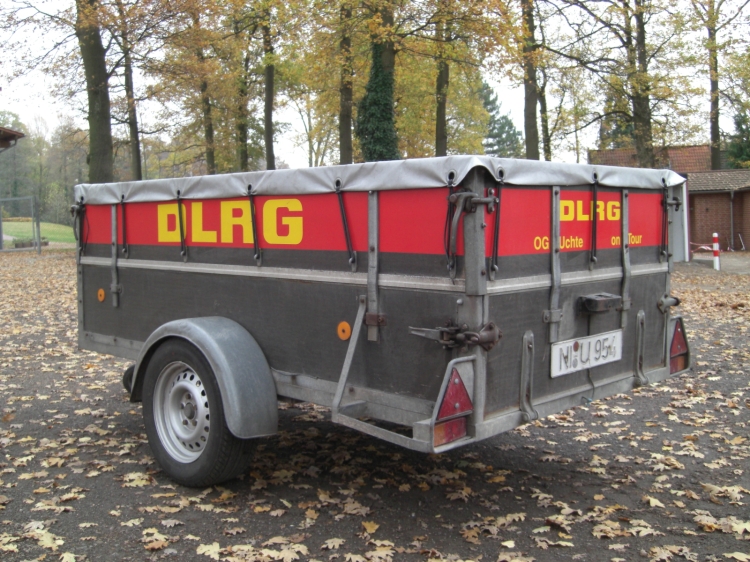 Der Mehrzweckanhänger war das erste Fahrzeug der Ortsgruppe. Er wurde so gebaut, dass die SG 20 Gruppenzelte und Ausrüstung darauf verstaut werden konnten. Hauptsächlich wurde er so für Kinder- und Jugendfreizeiten im In- und Ausland genutzt. Aber auch etliche Tonnen Baumaterialien wurden, bei den in Eigenleistung ausgeführten Aus- und Umbaumaßnahmen des JuAZ, über die Jahre mit ihm befördert oder Ausbildungsmaterial in Gitterwagen zu den Hallenbädern gebracht. Bis 2017 half er auch bei der Leerung der Altkleidercontainer ehe er in DLRG Rente ging.