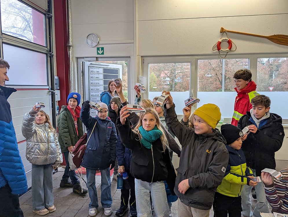 Die zweite Station drehte sich rund um unsere zwei Boote. Mit Unterstützung durch die Vorstandschaft wurde zuerst alles was so auf unseren Einsatzbooten zu finden ist genau betrachtet und erklärt. Anschließend durfte jeder aus verschiedenen Dingen die wichtigsten aussuchen, die unbedingt auf einem Einsatzboot gebraucht werden. Zudem bekam jeder der wollte die Möglichkeit, ein eigenes Boot zu basteln.