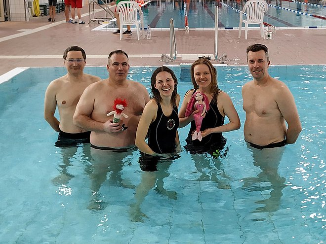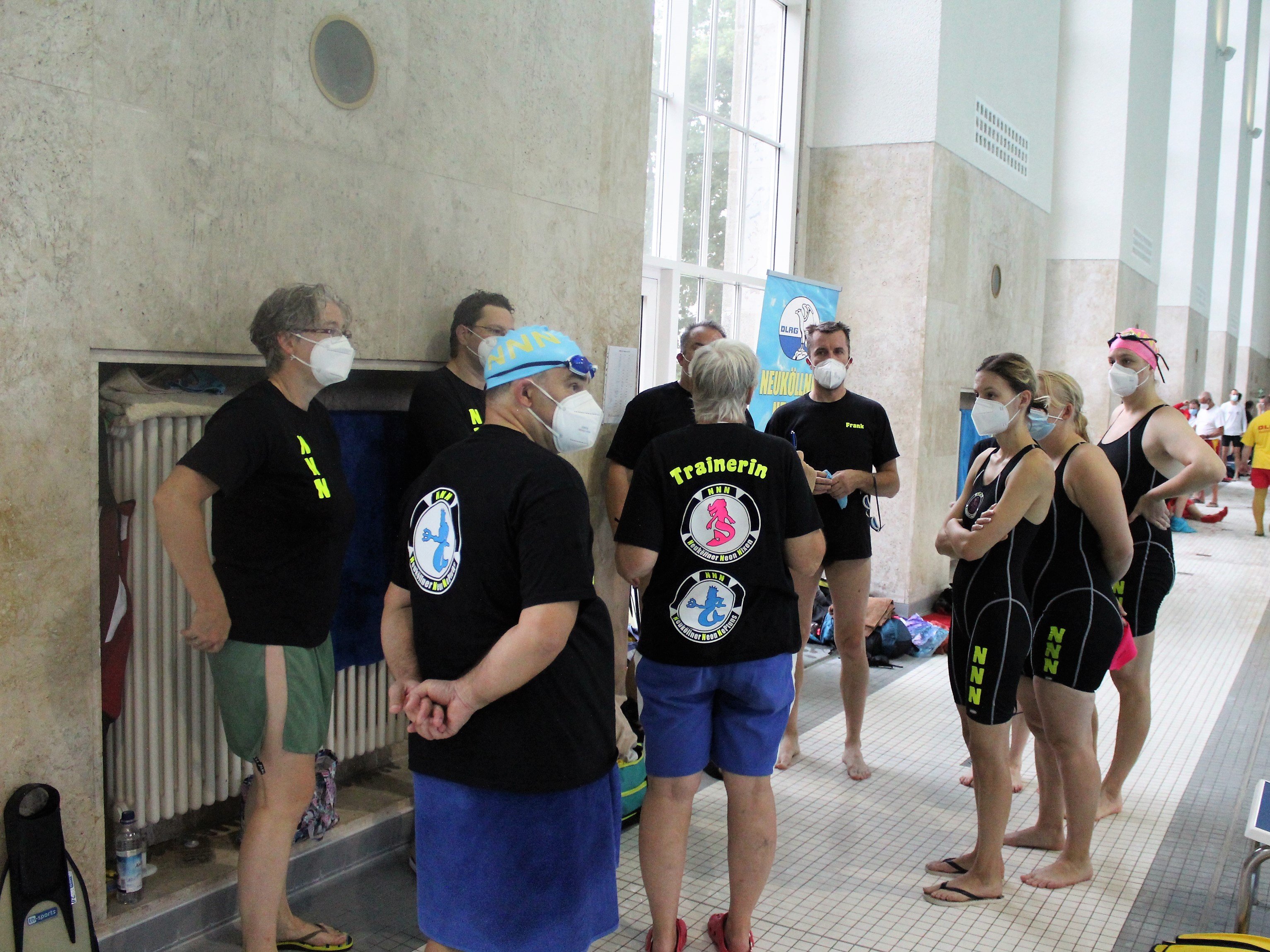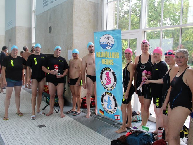 Am Sonntag standen dann die Mannschaftswettbewerbe an. Hier stellten die NNNs wie im letzten Jahr eine Mannschaft in der AK 100w und eine in der AK 170m. Trotz einiger Corona bedingter Ausfälle konnten beide Mannschaften ihre Plätze vom letzten Jahr verteidigen. Die Nixen wurden wieder Berliner Meister in ihrer Altersklasse und die Neptuns erschwammen sich die Silbermedaille.