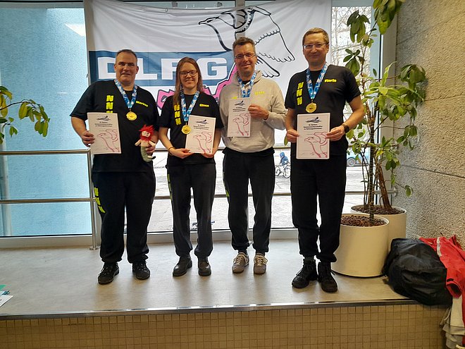Nachmittags ging es dann weiter mit den Mannschaftswettkämpfen. Hier startete dieses Mal eine gemischte Mannschaft aus Nixen und Neptuns in der AK 140 m. In vier spannenden Staffeln konnten sich die Neuköllner gegen die Mannschaft aus Charlottenburg-Wilmersdorf durchsetzten und den 1. Platz belegen. Damit konnten sie den Titel des Berliner Meister aus dem vergangenen Jahr erfolgreich verteidigen.