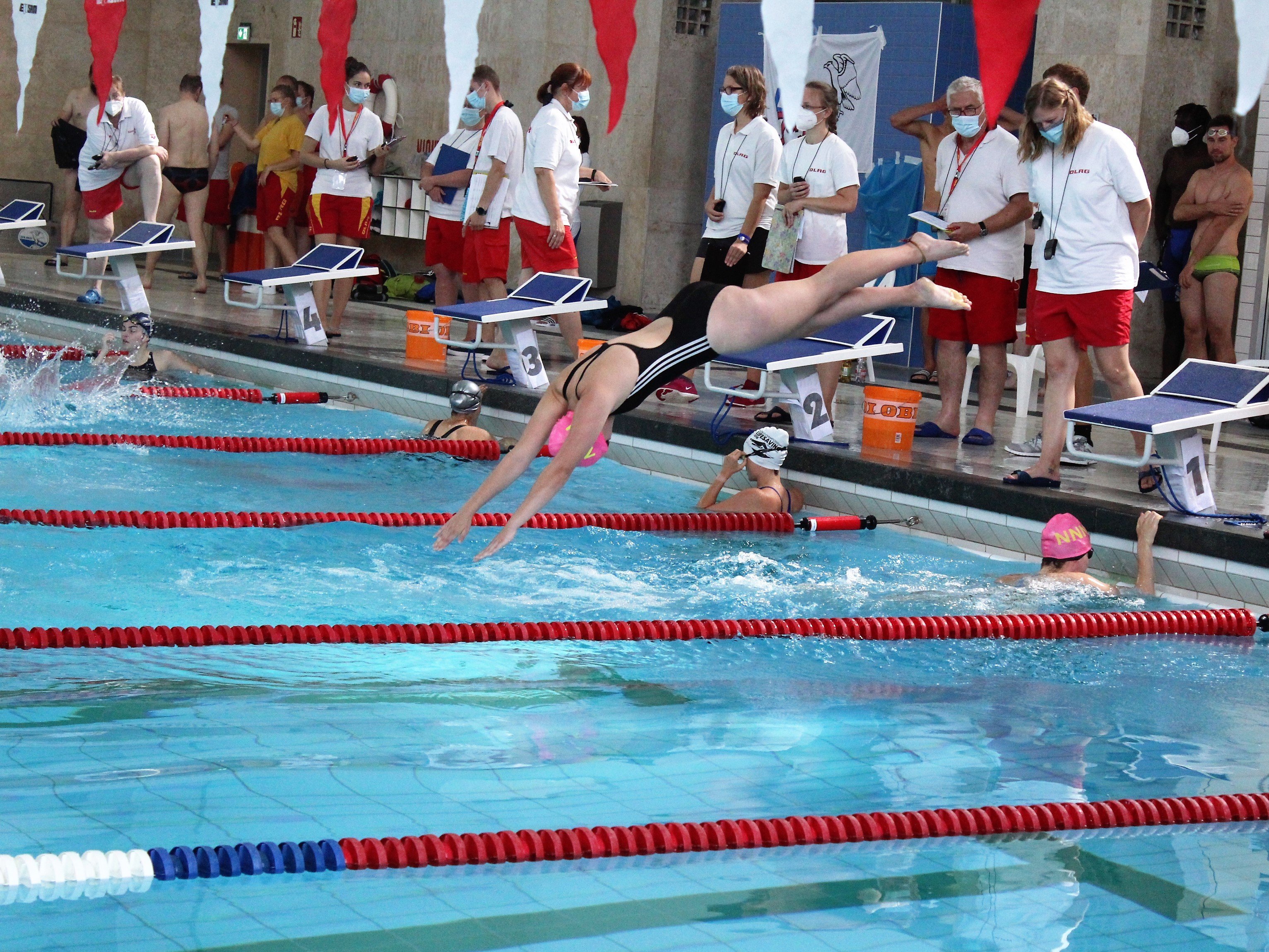 Am 22. und 29. August 2021 fanden die Berliner Meisterschaften und die Berliner Seniorenmeisterschaften in der Schwimmhalle in der Finkensteinallee in Lichterfelde statt. Nachdem die zunächst im Mai geplanten Wettkämpfe pandemiebedingt verschoben werden mussten, freuten sich alle Wettkämpfer*innen um so mehr auf die Veranstaltung. Natürlich fand alles nur unter strengen Hygienevorschriften wie Maskenpflicht in der Halle und den drei Gs statt. Am Samstag, den 22. August, starteten zunächst die Einzelwettkämpfe, hier konnte unsere Schwimmerin in der Altersklasse 17/18 den 3. Platz belegen.