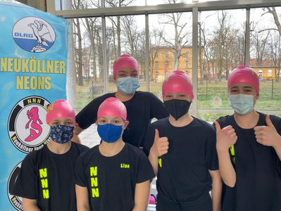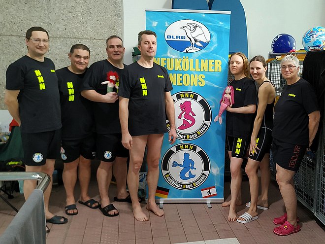 Die Teilnahme der Neuköllner Neon Nixen, Neon Neptuns und Mini Nixen an den Berliner Meisterschaften 2024 der DLRG war ein voller Erfolg. Für die Disziplinen Hindernisschwimmen, Gurtretterstaffel, Puppenstaffel und Lifesaver waren wir erstmals mit 5 Mannschaften am Start. Alle Mannschaften belegten Spitzenplätze unter den Top 3!