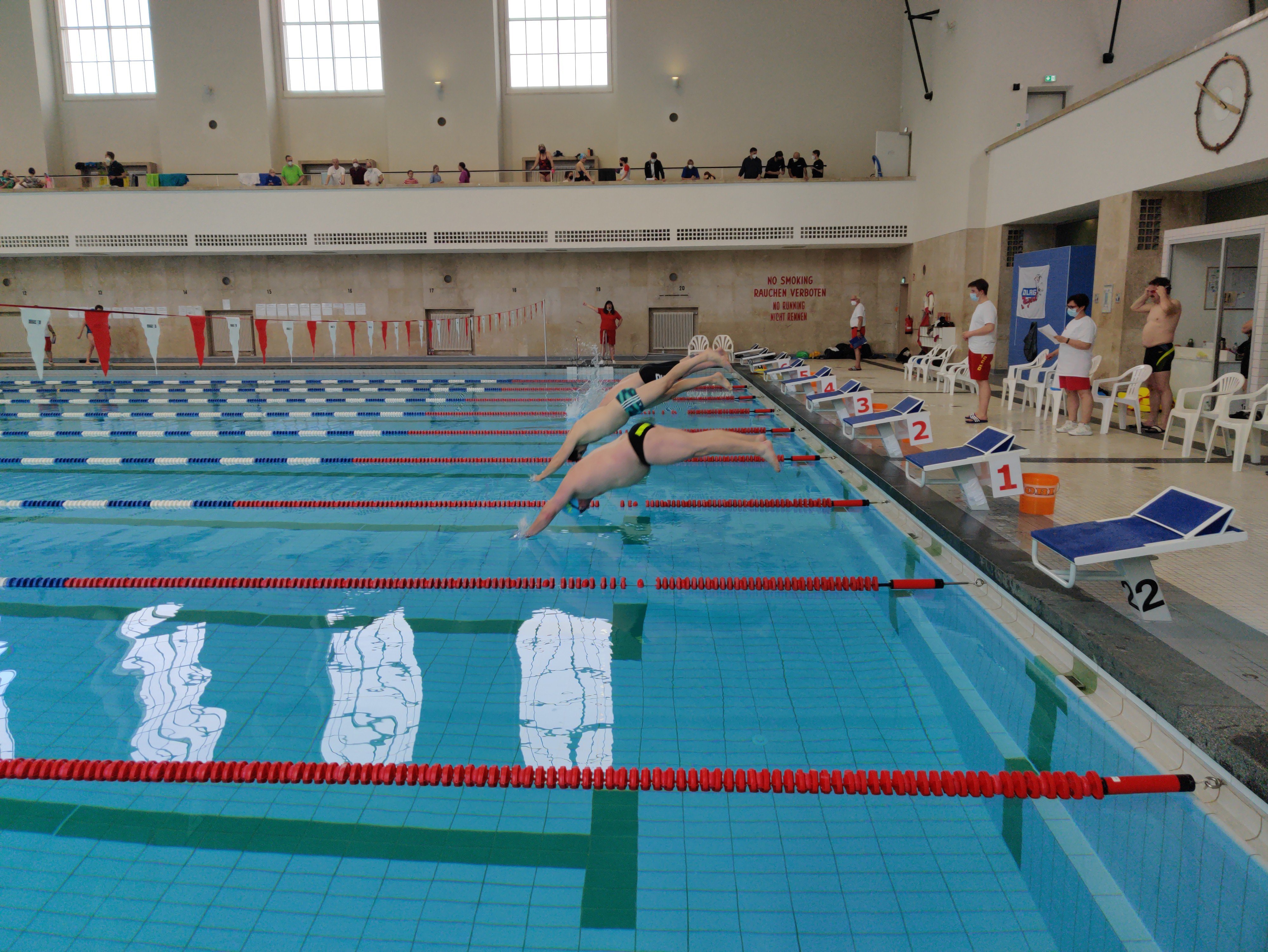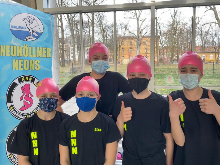 Am Vormittag gingen von den Neuköllner Neons drei Schwimmer*innen bei den Einzelwettkämpfen an den Start. Sie konnten an die guten Erfolge des letzten Jahres anknüpfen und erkämpften sich in jeweils drei Wettkämpfen alle einen Podestplatz.