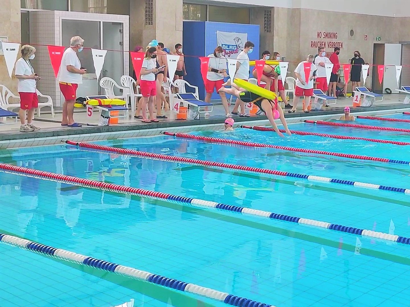 Am 2. und 3. April 2022 war es wieder soweit, die Berliner Rettungssportler*innen trafen sich in der Schwimmhalle in der Finckensteinallee zu den XLIX. Berliner Meisterschaften und den XXIII. Berliner Seniorenmeisterschaften. Wie schon im vergangenen Jahr waren die Wettkämpfe in verschieden Blöcke eingeteilt und es galt wieder ein strenges Hygienekonzept.