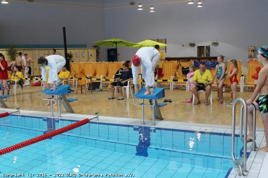 Am 22. Februar 2025 waren wir, die Ortsgruppe Potsdam, beim jährlichen Winterwettkampf vertreten. Teilgenommen haben außerdem die Gliederungen Ludwigsfelde-Zossen, Dahme-Spree und Borkheide. Insgesamt nahmen 123 Kinder an dem Vergleichswettkampf der Gliederungen in Brandenburg teil. Der Wettkampf fand wie immer in der Kristallterme in Ludwigsfelde statt. Auf den 6 Bahnen des 25m-Beckens haben die 21 Teilnehmer unserer Ortsgruppe um zahlreiche Medaillen gekämpft. Beim Schwimmen wurde dabei in 6 Altersklassen unterschieden. Die Altersklassen 1-5 umfassten jeweils 2 Jahrgänge vom Alter 6 -15 Jahre. In Altersklasse 6 starteten Schwimmer im Alter von 16-18 Jahren. Zusätzlich wurde auch noch in männlich und weiblich unterschieden. In den Einzeldisziplinen landeten 4 Teilnehmer aus Potsdam auf de ... Mehr erfahren