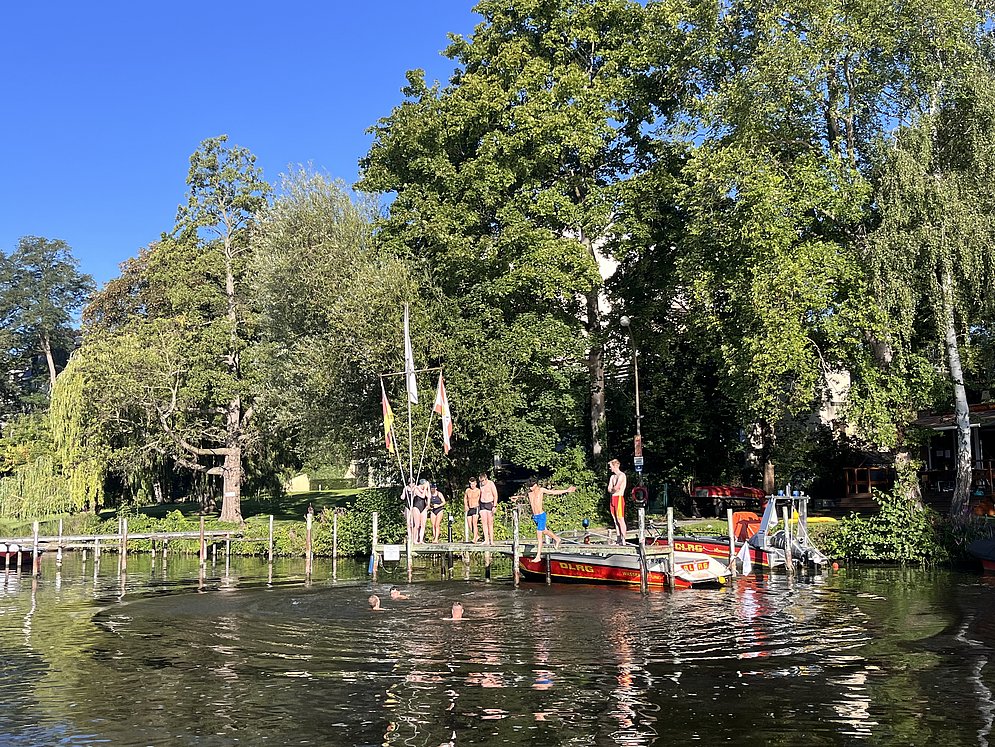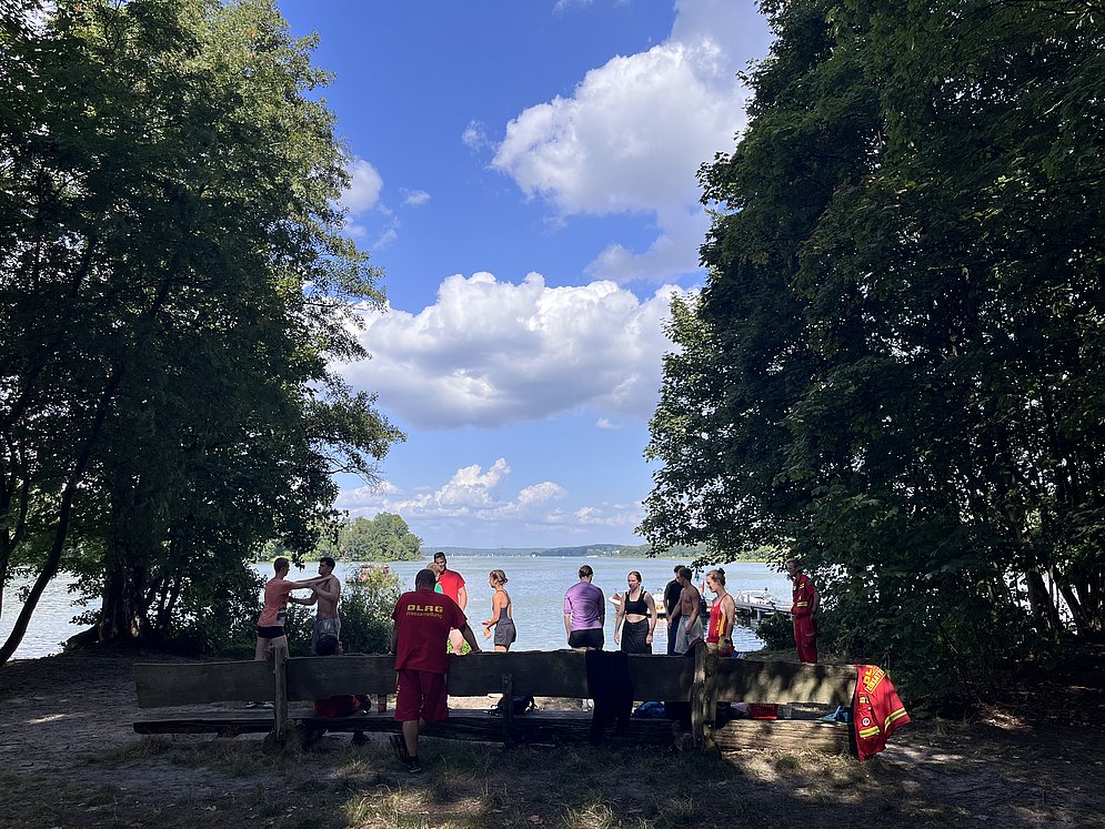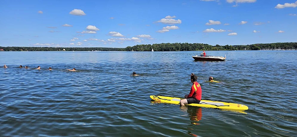 Die DLRG lebt das Motto „Vom Nichtschwimmer zum Schwimmer – vom Schwimmer zum Rettungsschwimmer“. Um als Bezirk unseren Teil dazu beizutragen, bieten wir zu unseren Schwimmhallenzeiten regelmäßig Rettungsschwimmkurse an, um das deutsche Rettungsschwimmabzeichen Bronze oder Silber vergeben zu können. Leider ist es nicht für jeden möglich, jede Woche einen Abend in der Schwimmhalle zu verbringen. Ganz genau deshalb bieten wir, immer in den Sommerferien, seit mehr als 10 Jahren, das Lifeguard Resort an. In diesem verbringen Jugendliche und junge Erwachsene, im Alter von 14 bis 25 Jahren, eine Woche auf unserer Wasserrettungsstation „Kleiner Wannsee“ und können ihren Rettungsschwimmschein im Freiwasser absolvieren. Eine Vorraussetzung ist, dass man schon sicher schwimmen kann, denn die Anforderungen bleiben dieselben, wie in der Schwimmhalle. Aber anders als im Poolbecken, erlebt man im Wannsee einen echten Eindruck in die Wasserrettung, denn hier kann es schon mal passieren, dass einem eine kleine Welle entgegenkommt. Auch das Tauchen im natürlichen Wasser ist meist ohne Weitsicht. Die Teilnehmenden bekommen also dadurch gleich eine Einsicht, in unsere alltägliche Arbeit als Rettungschwimmer:in, am Wannsee.