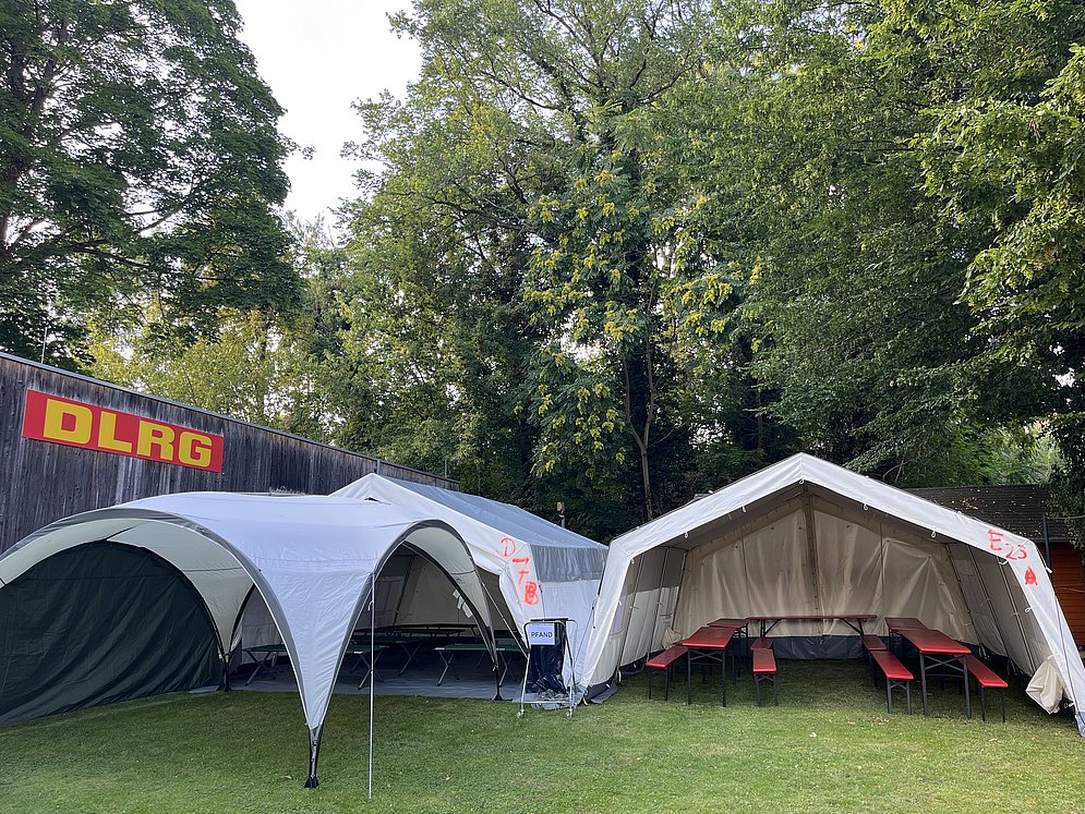 Übernachtet wird in einem großen Zelt, auf unserem Gelände, direkt neben der Wasserrettungsstation „Wannsee I“ bzw. „Kleiner Wannsee“.
