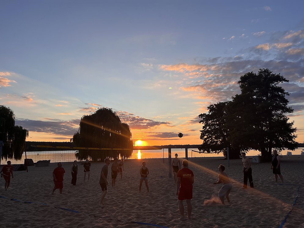Und da so ein Sommerferiencamp natürlich nicht nur aus Lernen besteht, darf auch der Spaß nicht fehlen. Das Ausbildungsteam lässt sich, jedes Jahr aufs Neue, großartige Freizeitaktivitäten einfallen, welche das Team noch näher zusammenbringt. In einigen Jahren fand ein Ausflug zur Feuerwache statt, um sich dort auszutauschen und zu informieren. Der Ausflug in den Kletterwald Potsdam findet regelmäßig statt, sofern das Wetter das zulässt. Weiterhin besteht seit vielen Jahren ein Abkommen mit dem Strandbad Wannsee, um dort Volleyball zu spielen, sobald für die Besucher Badeschluss ist. Die Rückfahrt zur Station wird oft von einem tollen Sonnenuntergang begleitet. Die Abende klingen dann meistens an der Feuerschale aus - mit leckerem Stockbrot oder Marshmallows.