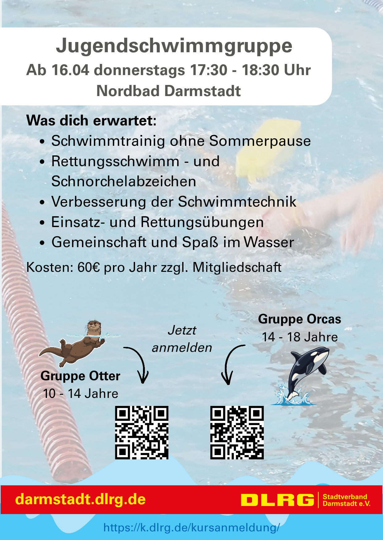 Die Jugendschwimmgruppe richtet sich an Jugendliche, die regelmäßig trainieren und ihre Schwimmfähigkeiten weiter ausbauen möchten. Im Fokus stehen die Verbesserung der Schwimmtechnik sowie Inhalte aus dem Rettungsschwimmen.