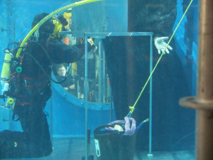 Ein Hafenmitarbeiter wird während seines Inspektionsganges plötzlich durch eindringendes Wasser in einem Pumpenraum eingeschlossen. Er kann sich in einen dunklen Hohlraum retten, der Ausgang ist für ihn aber nicht mehr erreichbar. Die DLRG setzt einen Taucher mit Schlauchversorgung von außen ein, der mit Hilfe seiner am Helm befestigten Kamera die Einsatzstelle erkundet. Er fordert Werkzeug an, um sich Zugang zu dem Verunfallten zu verschaffen. Er versorgt den Eingeschlossenen mit einer Atemhilfe. In der Zwischenzeit hat sich ein zweiter Taucher, der mit einer leichten Tauchausrüstung und einer Rettungsplattform ausgerüstet ist, von einem Hubschrauber (simuliert) zur Unfallstelle abgeseilt.